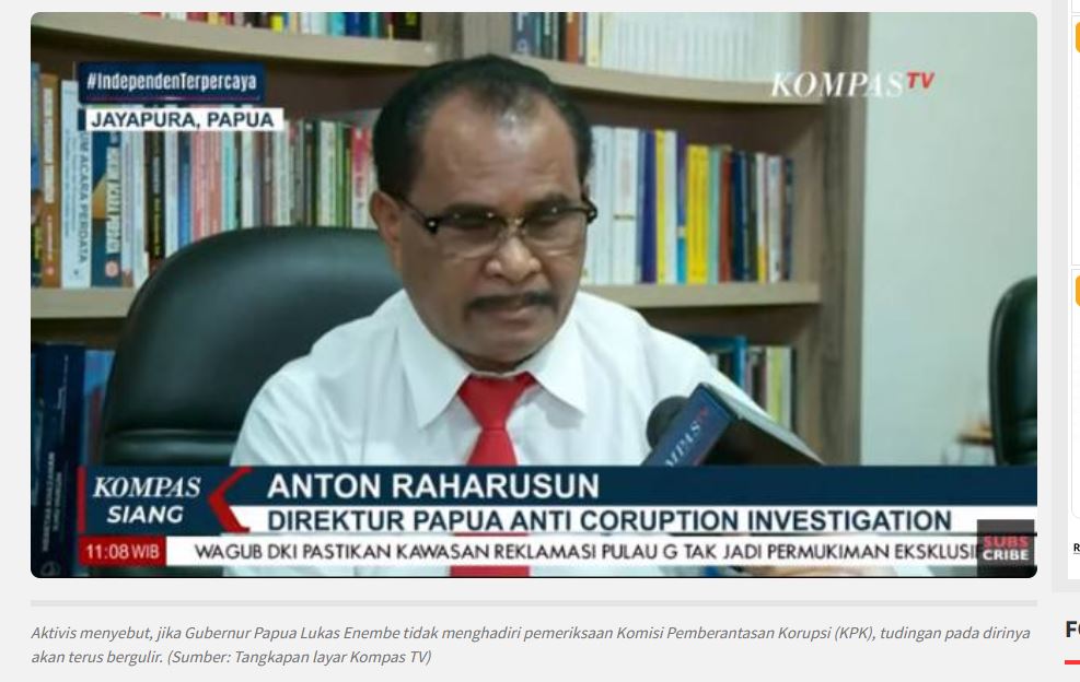 Tudingan dugaan korupsi terhadap Gubenur Papua Lukas Enembe akan terus bergulir apabila ia tak memenuhi undangan pemeriksaan KPK. Pendapat itu disampaikan oleh Direktur Papua Anticorruption Investigation, Anton Raharusun, menanggapi keengganan Lukas Enembe datang memenuhi surat pemanggilan KPK.