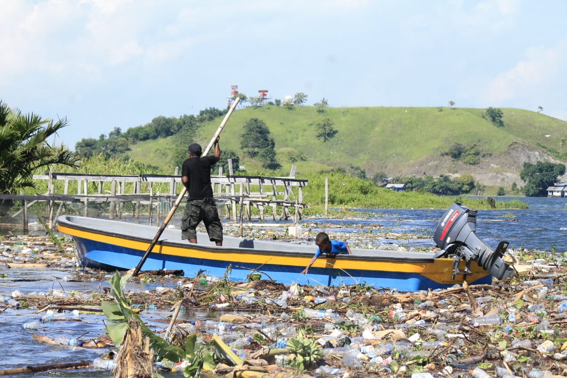 “Sampah -sampah yang ada di depan rumah ini semua kiriman dari curah hujan yang tinggi. Kalau sudah begini mama dorang sudah tidak bisa pasang jaring, soalnya tidak hanya kayu saja namun sampah dalam karung, plastik juga banyak yang berhamburan di dalam dan di atas air danau,” keluh Sarce.