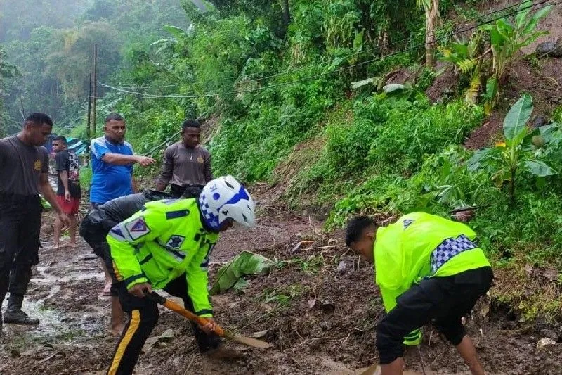 Ditambahkan, untuk lokasi longsor yang menutupi badan jalan di tanjakan Kabuena sehingga kendaraan dari Kota Serui menuju Distrik Angkaisera dapat kembali normal.