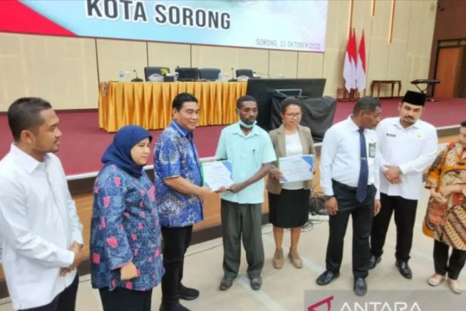 Wakil Ketua Komisi VIII DPR RI, Diah Pitaloka selaku ketua tim usai rapat bersama Pemerintah Daerah Papua Barat di Kota Sorong, Senin secara simbolis menyerahkan bantuan Kemensos BLT BBM kepada sebanyak 9.201 keluarga penerima manfaat dengan total anggaran senilai Rp2,7 miliar.