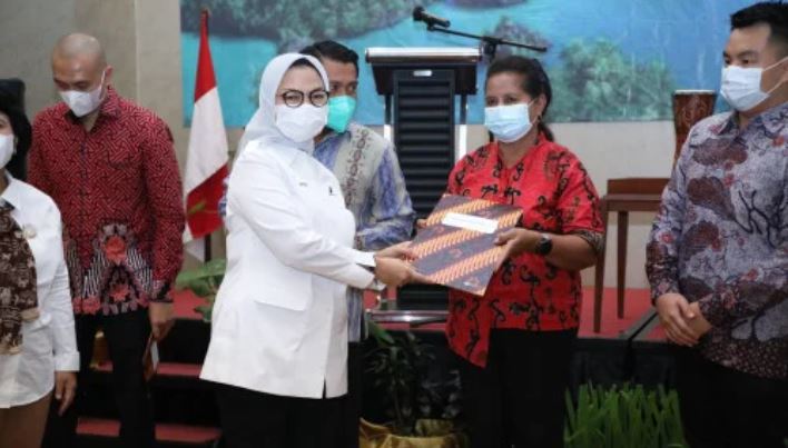 Dalam kesempatan ini, Penny juga menyerahkan lima NIE produk pangan olahan dan satu Sertifikat Cara Produksi Pangan Olahan yang Baik CPPOB kepada pelaku UMKM di Kabupaten Sorong.