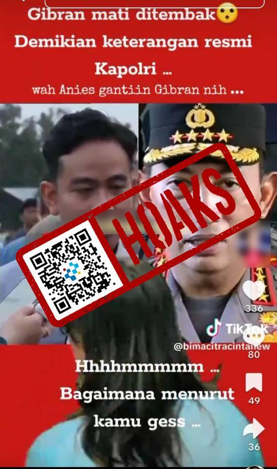 Sebuah video yang beredar di media sosial TikTok memuat klaim menyesatkan bahwa Wakil Presiden (Wapres) Gibran Rakabuming Raka meninggal karena ditembak. Dalam video tersebut, terlihat Gibran tengah diwawancarai sejumlah jurnalis sebelum terdengar suara letusan yang dikaitkan sebagai tembakan.