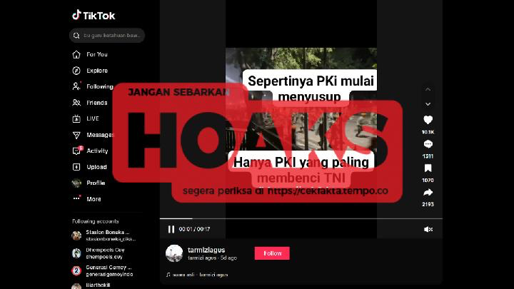 Beredar sebuah unggahan video di media sosial TikTok yang mengeklaim bahwa Partai Komunis Indonesia (PKI) menyusupi aksi demonstrasi pada Agustus 2025 lalu. Klaim tersebut sontak menimbulkan keresahan publik dan memicu berbagai spekulasi di masyarakat.