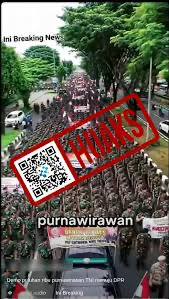 ”Puluhan ribu purnawirawan TNI sedang berjalan kaki menuju DPR RI untuk melakukan demo besar-besaran yang menuntut DPR RI untuk segera melakukan sidang dalam rangka pemakzulan Wapres. Purnawirasan TNI sudah tidak tahan dengan aksi DPR,” ujar narator video tersebut.