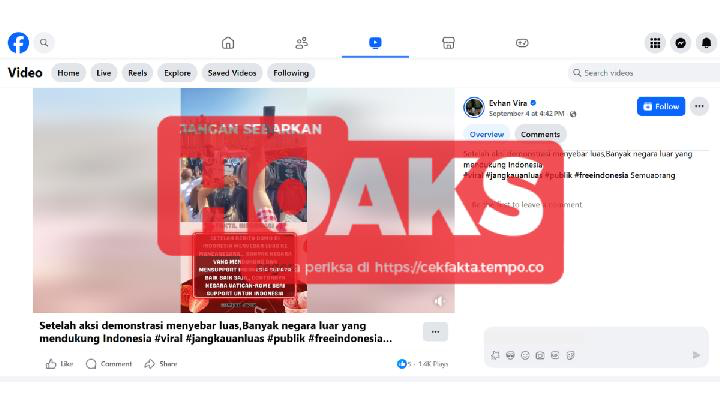 Video dengan klaim warga Cina dan Vatikan mendukung demonstrasi masyarakat Indonesia, beredar di akun TikTok pada 4 September 2025 dan Facebook.