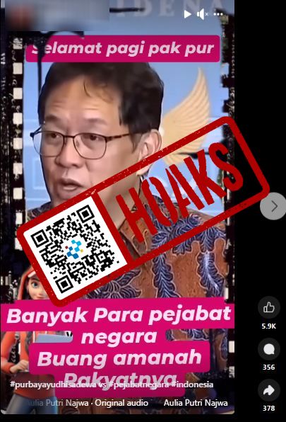 Pengecekan lebih lanjut di situs resmi Sekretariat Kabinet setkab.go.id menunjukkan bahwa nama Purbaya masih tercantum sebagai Menteri Keuangan. Tidak ada informasi resmi apa pun yang mengindikasikan pergantian posisi. Dengan demikian, narasi dalam video yang beredar dapat dipastikan keliru.