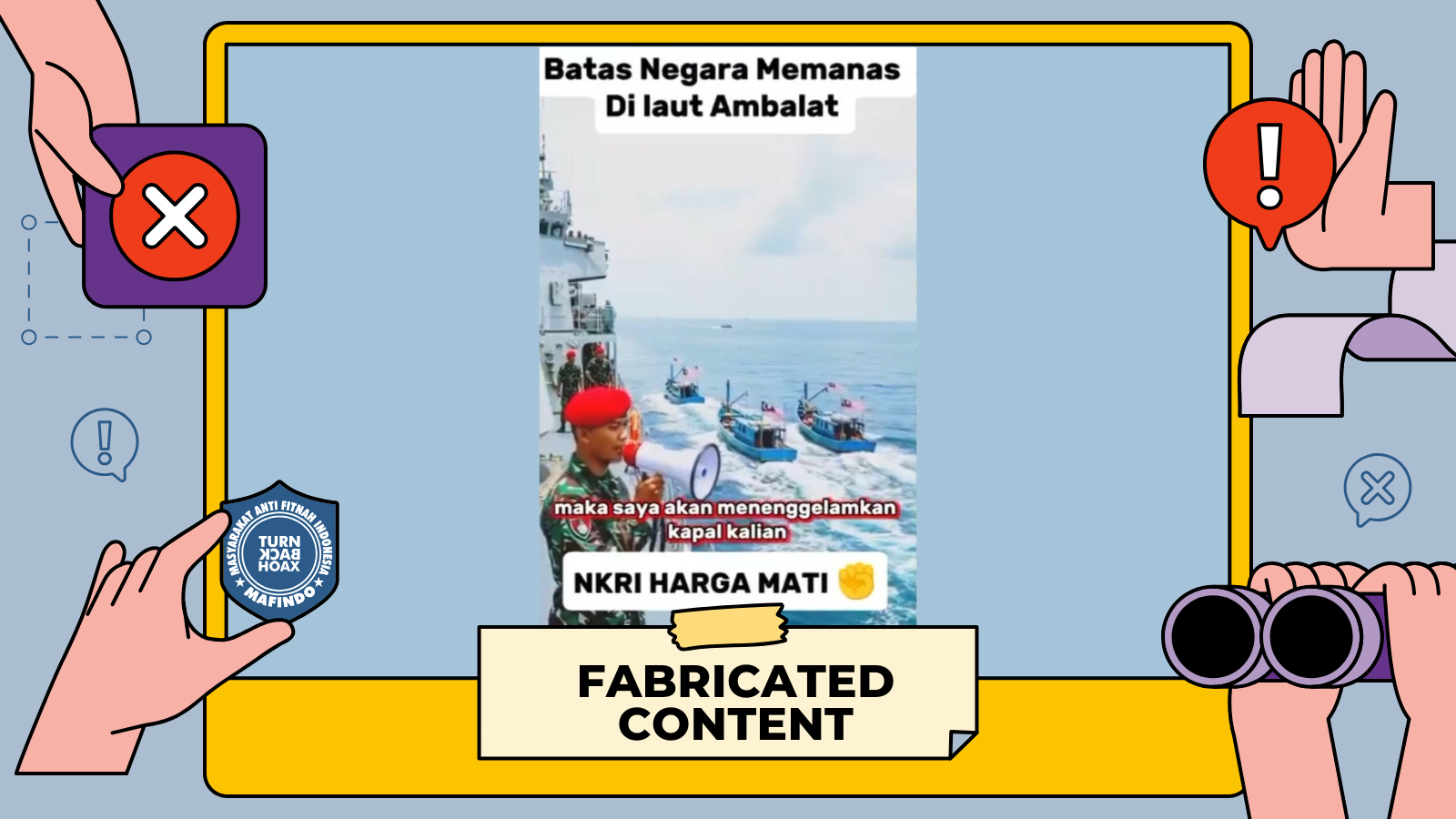 Hingga saat ini, tidak ada sumber resmi yang menyatakan adanya ancaman dari TNI AL seperti dalam video tersebut. Dengan demikian, unggahan itu dikategorikan sebagai konten palsu atau fabricated content.