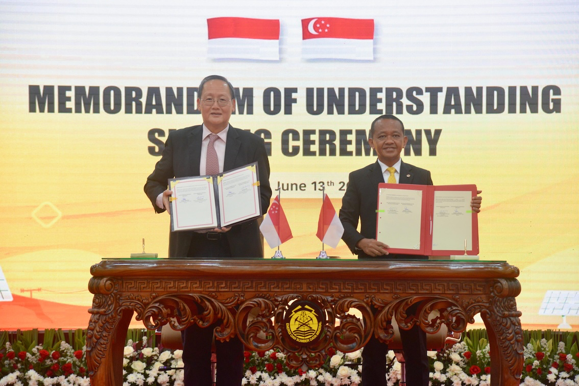 Kerja sama antar kedua negara tersebut dituangkan dalam tiga Memorandum of Understanding (MoU) yang ditandatangani oleh Menteri Energi dan Sumber Daya Mineral (ESDM), Bahlil Lahadalia, dan Menteri Energi dan Ilmu Pengetahuan & Teknologi Singapura, Tan See Leng, Jum’at (13/6).
