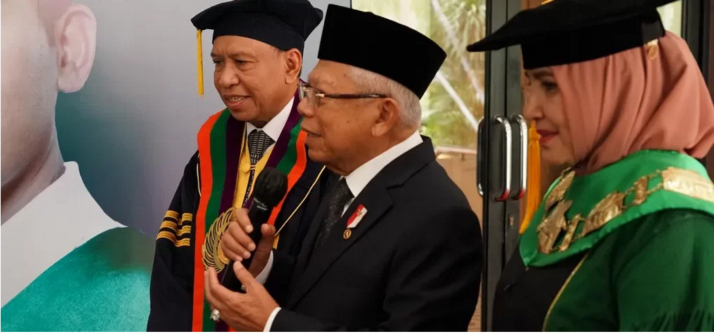 Mendampingi Wapres pada konferensi pers kali ini, Menteri Pemuda dan Olahraga Zainudin Amali dan Rektor UIN Syarif Hidayatullah Jakarta Amany Lubis. (EP/SK-BPMI, Setwapres)