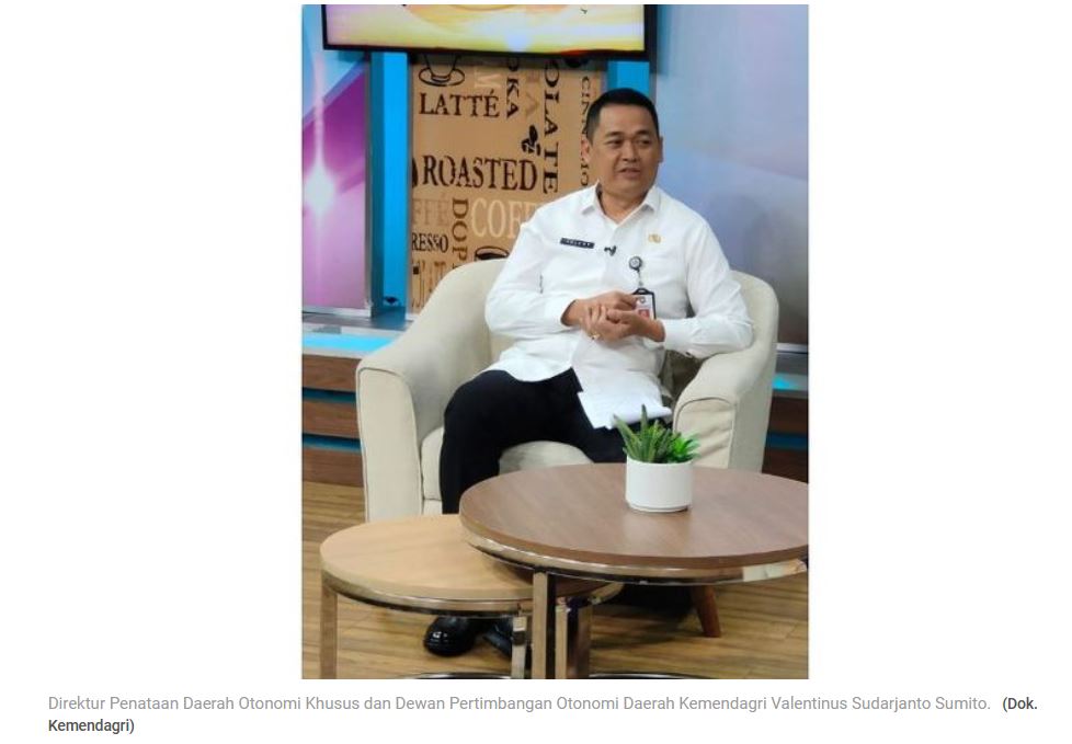 “Jadi, diupayakan agar penjabat gubernur bisa dilantik pada akhir Oktober 2022 sehingga tiga DOB bisa mengikuti tahapan Pemilu 2024,” ucap Valentinus. Untuk mendukung pemerintahan pada tiga DOB, Kemendagri pun telah menyiapkan sejumlah rancangan usulan peraturan gubernur (pergub) terkait organisasi perangkat daerah (OPD). Dengan pergub itu, penjabat gubernur bisa segera melantik jajaran OPD di daerahnya.