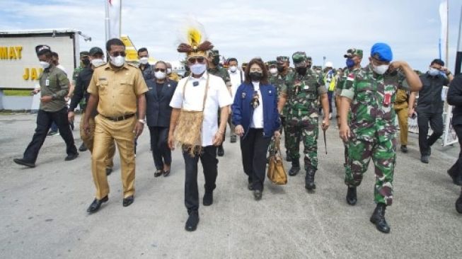 Usai menyampaika arahan, Kepala Staf Kepresidenan RI Moeldoko yang didampingi Deputi V Kepala Staf Kepresidenan RI Jaleswari Pramodhawardani melalui pantuan udara di wilayah Biak Numfor.