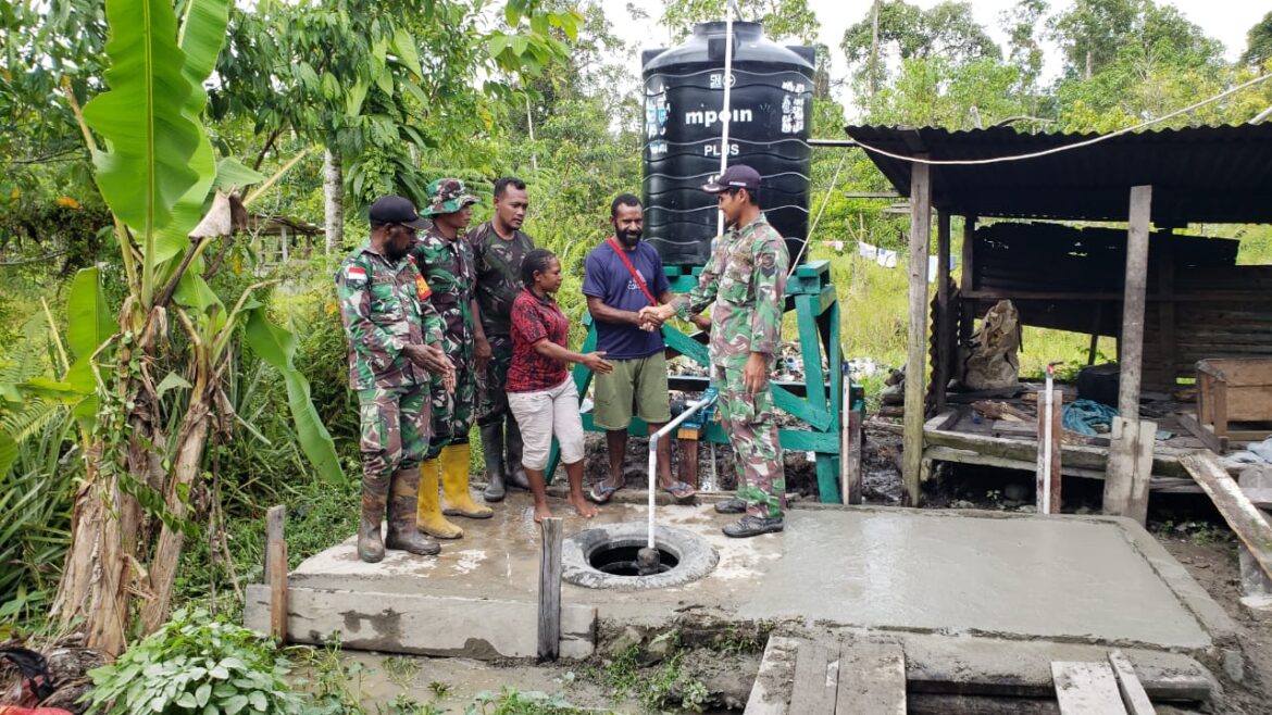 Kodim 1715/Yahukimo Bantu Pembuatan Saluran Air Bersih Masyarakat