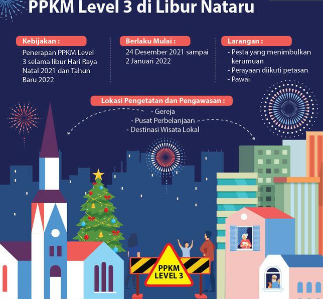 Jakarta – Pemerintah RI menetapkan seluruh wilayah di Indonesia berstatus Pemberlakuan Pembatasan Kegiatan Masyarakat (PPKM) Level 3 saat momen libur Natal dan Tahun Baru (nataru) 2022.