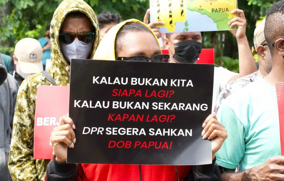 Papua, nusarayaonline.id – Forum Mahasiswa Papua untuk Daerah Otonomi Baru Jabodetabek menggelar aksi damai di dua lokasi, yakni gedung DPR dan kawasan patung kuda, Jakarta, Kamis (23/6/2022). Sekitar 200 mahasiswa ini mendorong DPR dan pemerintah agar segera mengesahkan RUU daerah otonom baru (DOB) Papua.