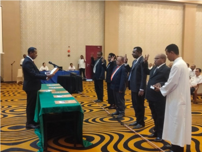 Jayapura – Panitia Pemilihan (Panpel) Anggota Majelis Rakyat Papua (MRP) Papua Selatan yang berjumlah 5 orang, dilantik oleh Pj Gubernur Papua Selatan Dr. Ir. Apolo Safanpo, ST, MT, di Swiss Belhotel, Rabu (29/3), kemarin.