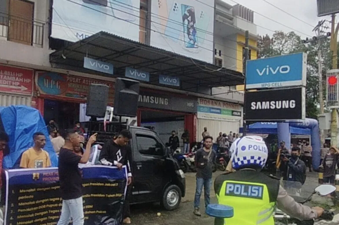Deflisen Pahala koordinator aksi menyatakan enam poin pernyataan sikap yang dibacakan di muka umum berisikan penolakan tiga periode masa jabatan presiden hingga menolak penundaan Pemilihan Umum (Pemilu) 2024.