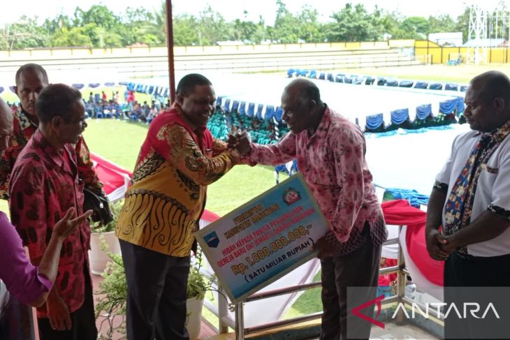 Pada kesempatan itu, Bupati Manokwari, Hermus Indou juga menyerahkan bantuan hibah keagamaan dari Pemkab Manokwari bagi 11 pihak untuk pembangunan gereja baru maupun pembangunan sarana pendukung GKI di Manokwari dengan nominal terendah mencapai Rp35 juta dan tertinggi mencapai Rp1,1 miliar.