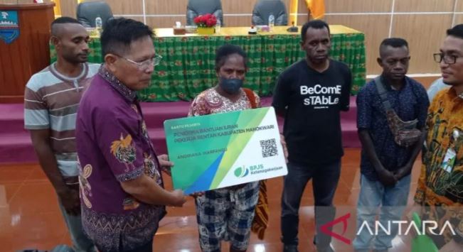Papua, nusaraya.online – Pemerintah Kabupaten Manokwari, Papua Barat menyerahkan kartu Jaminan Sosial Ketenagakerjaan (Jamsostek) sebagai perlindungan bagi 9.455 tenaga kerja sektor informal di kabupaten setempat.