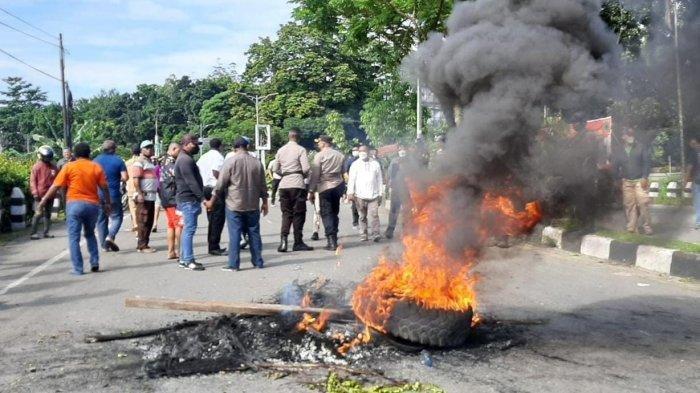 Kondisi ruas jalan Yos Sudarso, Distrik Manokwari Barat, Kabupaten Manokwari, Papua Barat, diblokade sejumlah masyarakat