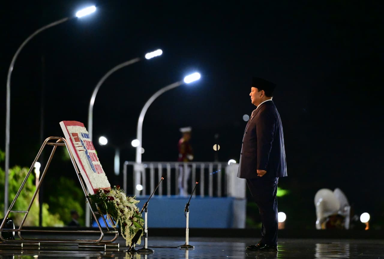 Presiden Prabowo Subianto memimpin Upacara Ziarah Nasional dan Renungan Suci di Taman Makam Pahlawan (TMP) Kalibata, Jakarta Selatan, Minggu (9/10/2025) malam. Kegiatan ini diselenggarakan dalam rangka memperingati Hari Pahlawan yang jatuh setiap 10 November.