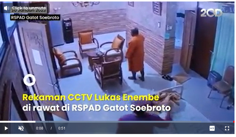 detikcom memperoleh 2 potongan rekaman video CCTV dari sumber terpercaya yang memperlihatkan kondisi Lukas Enembe menjalani perawatan di RSPAD Gatot Soebroto. Dalam video itu, terlihat Lukas Enembe masih bisa beraktivitas.