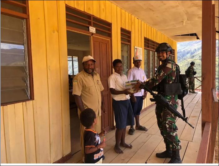 Tentara Nasional Indonesia (TNI) berkomitmen terus mendukung kemajuan pendidikan di wilayah penggunungan di Provinsi Papua. Seperti yang dilakukan Personel Satgas Yonif Mekanis 203/AK Pos Balingga terus membantu perkembangan dunia pendidikan di SMPN 1 Balingga Desa Binolanggen, Distrik Balingga, Kabuputen Lanny Jaya. Papua.