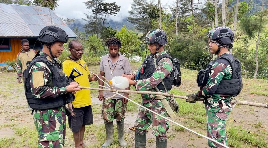 Terang di Bumi Papua Warga Ceria, Yonif R 321 Kostrad Bangun Penerangan