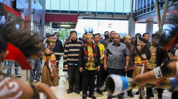 Mengenakan mahkota Papua, Mendagri Tito juga disambut tarian adat Papua. Sejumlah agenda dijadwalkan akan dilakukan Mendagri selama berada di tanah Papua.