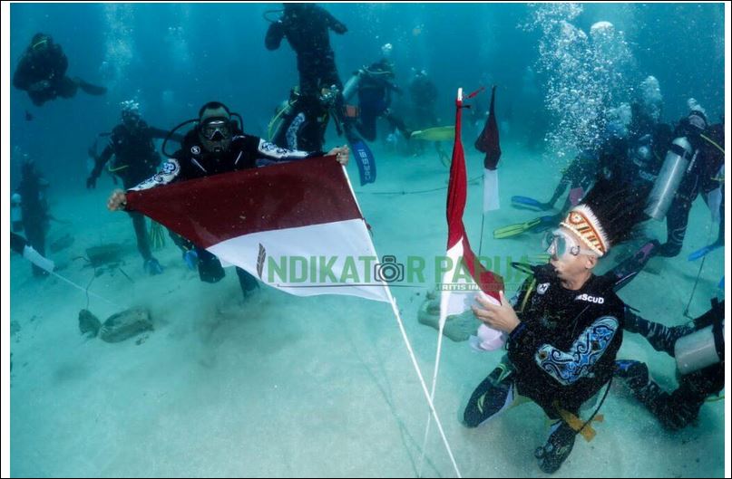 Dalam prosesi tersebut, Wempi bersama para peserta upacara kompak mengenakan perlengkapan menyelam. Mereka terlebih dahulu berbaris di Dermaga Ditpolairud Polda Papua, lantas kemudian menuju Tanjung Kayu Batu untuk membentangkan bendera merah putih di bawah laut.