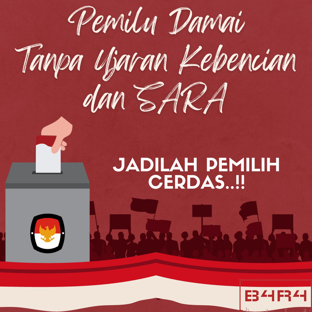 Pemilihan Umum (Pemilu) merupakan pesta demokrasi yang menjadi hajat besar bangsa Indonesia, melalui pemilu, rakyat memiliki hak untuk memilih calon pemimpin serta anggota DPR yang akan duduk di parlemen. Oleh karena itu penting sekali bagi setiap elemen masyarakat untuk mewujudkan Pemilu yang damai, tanpa ujaran kebencian dan bebas dari narasi hoax.